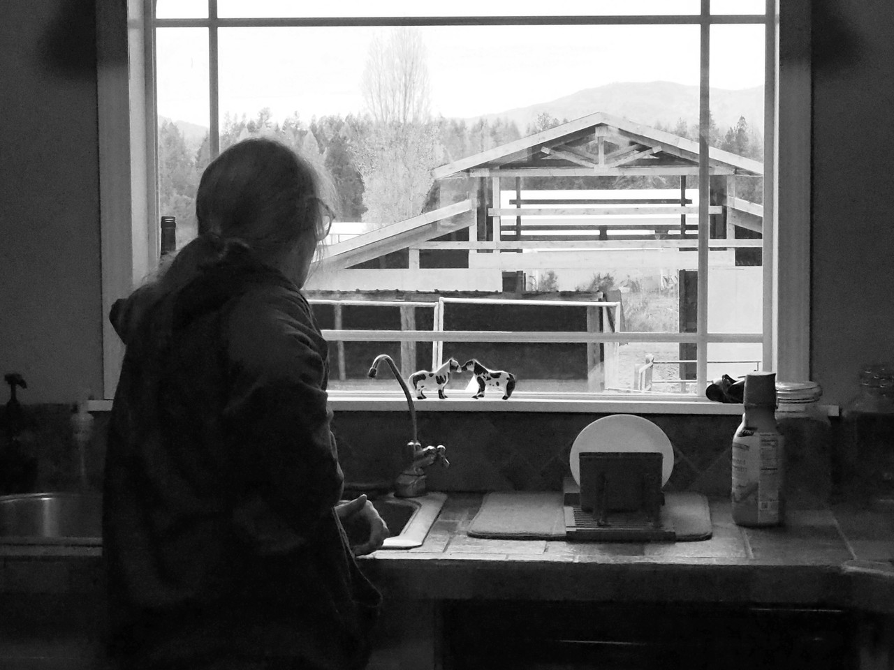 Laurie looking at her barn-in-progress through the kitchen window. (Original Post)